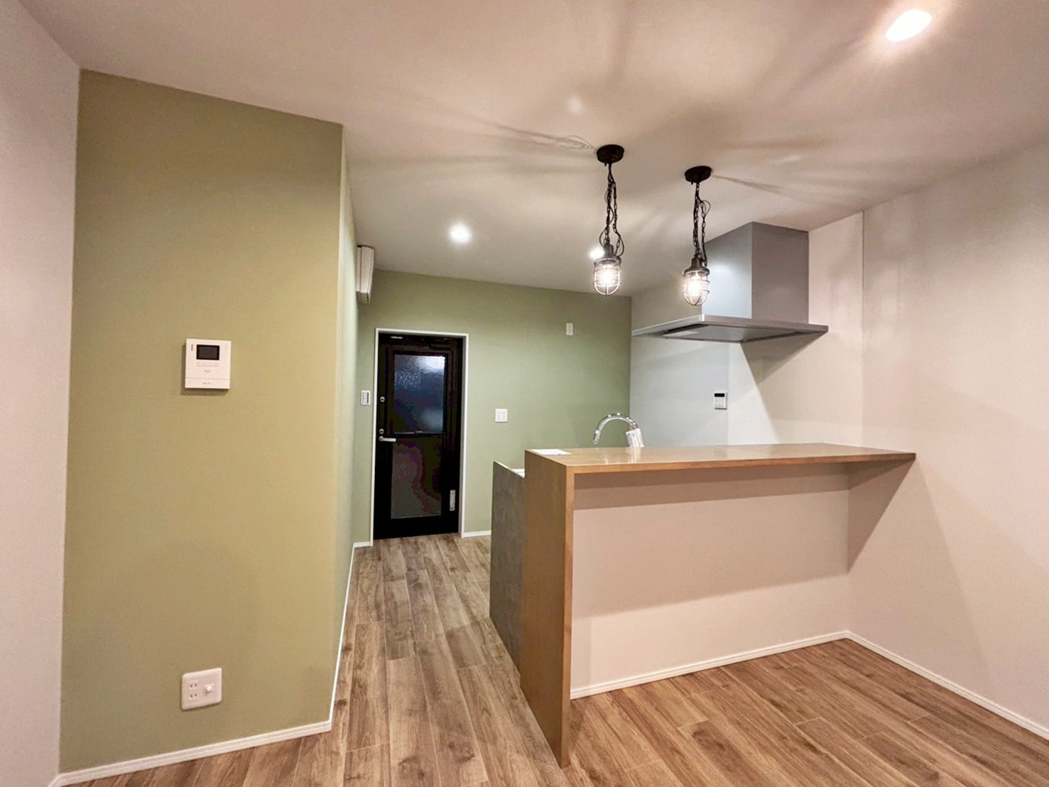 お好みのカラーのアクセントクロスを取り入れることで、リノベーションならではのオリジナル感を味わう事ができます。