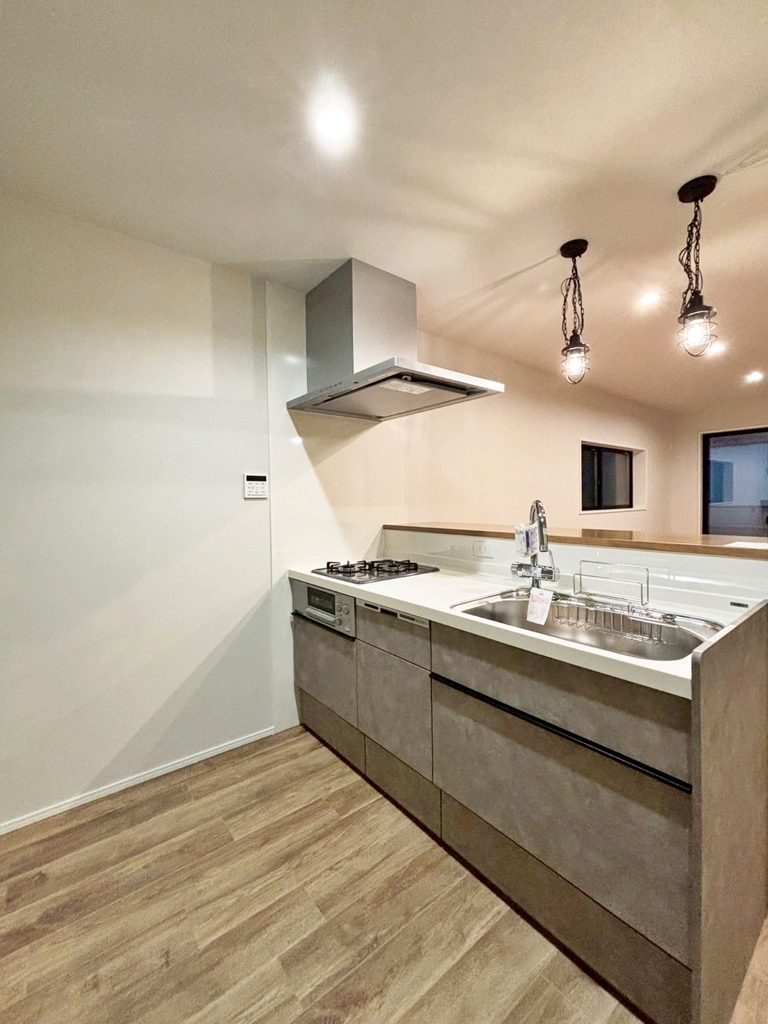 楽しい家族時間を過ごせるよう、リビングを見渡せるカウンターキッチンにしました。