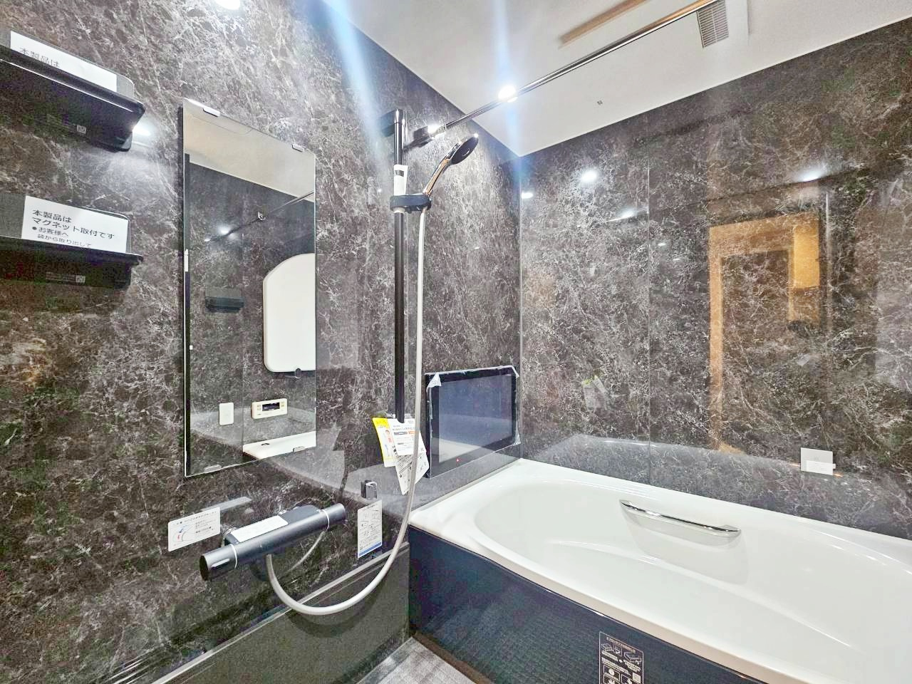 入浴時間が楽しくなる、大画面の浴室用テレビも設置しました。