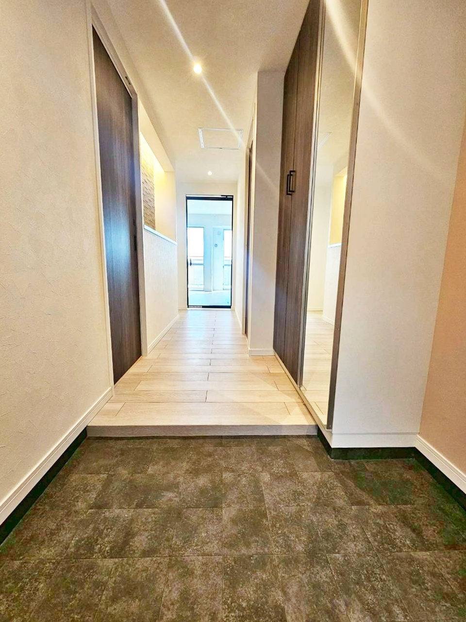 圧迫感を感じることが多い廊下ですが、ガラス越しから差し込む明るい光が、空間に広がりをもたらしてくれます。
