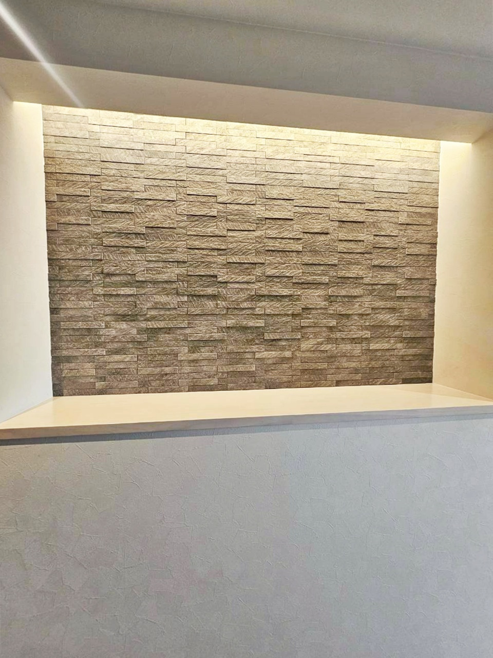 壁面のエコカラットと間接照明で照らしたやわらかな光が、メリハリのある空間を、より引き立ててくれます。