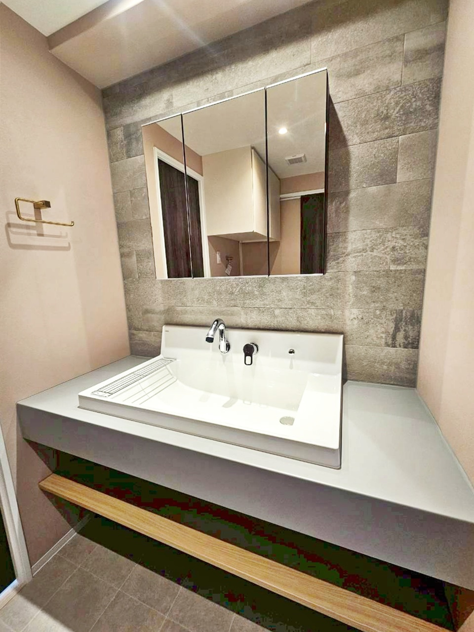 手洗いキャビネットも設置し、手洗い動線がスムーズで、いつでも清潔な快適空間に仕上がりました。