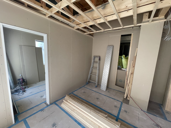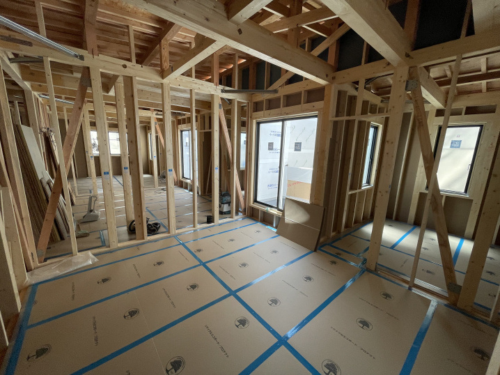 設備配管工事が完了し、これからキッチンやお風呂などの住宅設備を設置する工程に移ります。