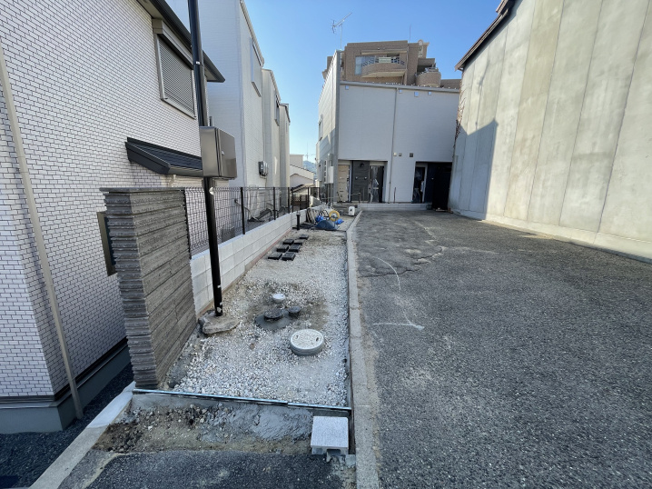 足場を解体し、最後は道路舗装などの外構工事を行い、工事完了です!