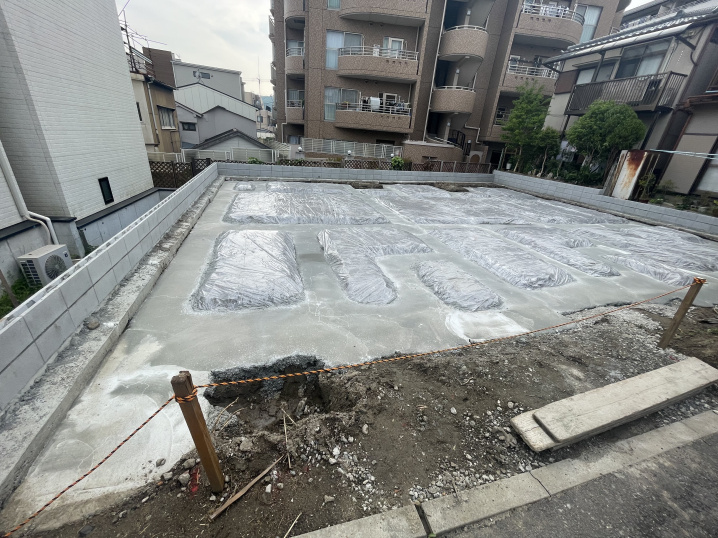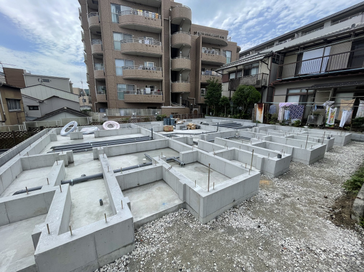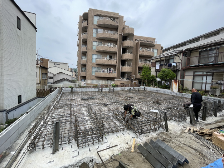地盤調査なども経て、これから基礎の土台作りに進みます。