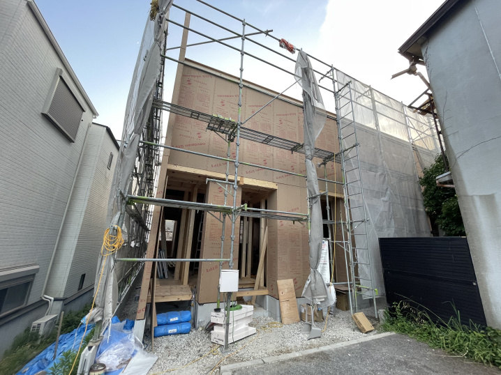 今回は、道路から細長く延びる通路の先に、広い敷地が広がる形状が特徴の、旗竿地と呼ばれる土地に建築していきます!