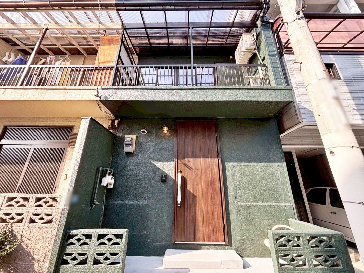 深みのあるシックなグリーンが映えるアンティークな外観へ。