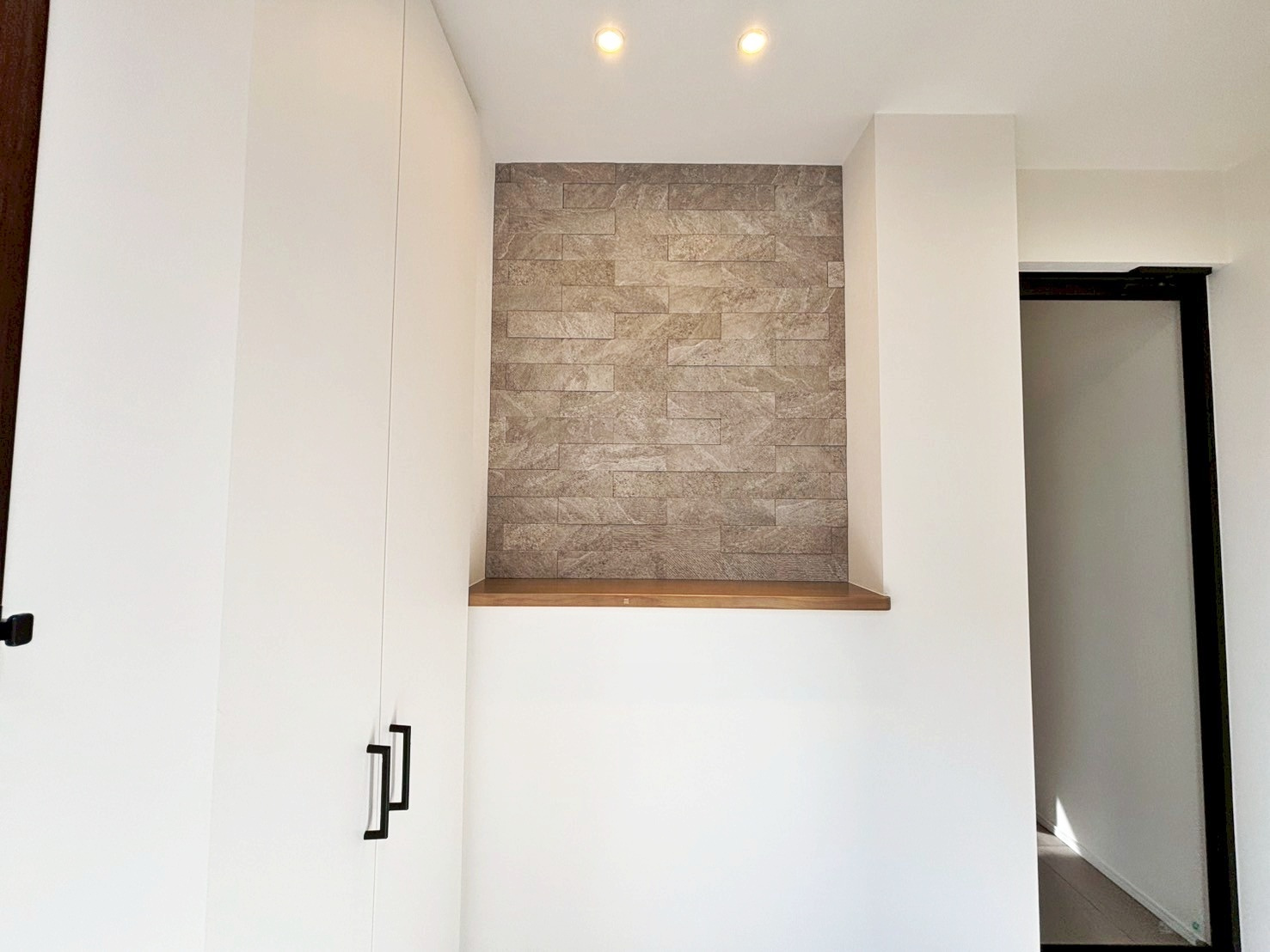玄関すぐには、間接照明と組み合わせたおしゃれなニッチを設けました。